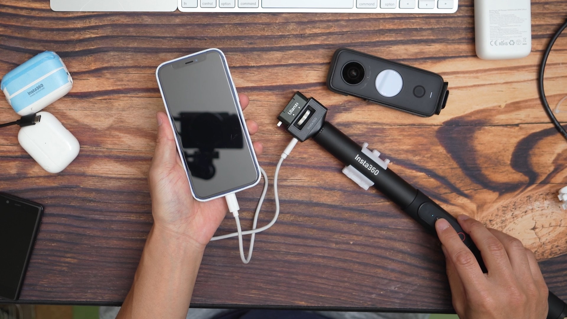 iPhone でも Air Pods でも INSATA360 ONE-RS(R) でも Go2 でも Android でも USB-C 端子が付いていれば充電(給電)可能です。